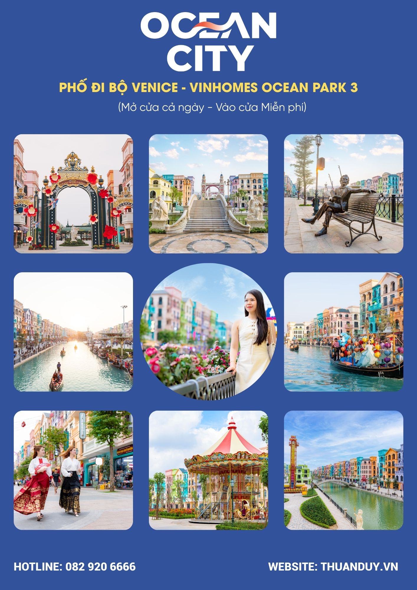 Ocean City – thiên đường giải trí “tất cả trong một” tại Vinhomes Ocean Park 2 & 3. Đi bộ Venice, phố Hàn – Nhật – Hong Kong, công viên nước, show nhạc nước & pháo hoa… tất cả nối liền trong một hành trình mượt mà bằng xe tuk tuk điện nội khu.
